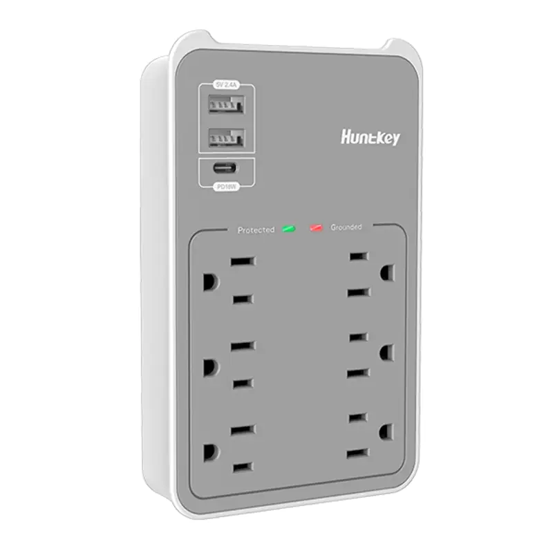 One standout product from Huntkey is the SMD 607C Wall Mount Power Strip. This versatile wall charger features six American AC outlets and multiple USB ports, including two USB-A and one USB-C, allowing you to charge up to three devices simultaneously. The USB-C port supports Power Delivery (PD), ensuring fast charging for compatible devices. Whether you need to power a laptop, smartphone, or tablet, Huntkey’s wall charger meets all your charging needs in one compact solution.